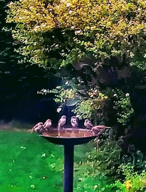 Other visitors to the garden are the sparrows!